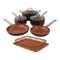 The Copper Pan Cooking Excellence 10 Piece Aluminum Nonstick Cookware Set in Copper is the ideal kitchen set for any professional home cook. Every piece features a alluring copper colored nonstick ceramic coating for easy food release. The hollow stainless steel handles keep pots and pans light weight and easy to maneuver food around. For proper care and use, hand wash the set with soft sponges or non abrasive plastic meshes. Fire up chicken veggie stir fry, boil gnocchi, or crisp up cauliflower in the raised basket for an unforgettable feast! Item Dimensions: 20.00″ x 13.00″ x 10.00″ Item Weight: 12.00lbs