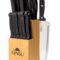 Included Components: 8” Chef Knife, 8” Slicing and Carving Knife, 7” Santoku Knife, 5” Boning Knife, 4.5” Utility Knife, (6) Steak Knives, 3.5” Paring Knife, Kitchen Shears, Wood Storage block