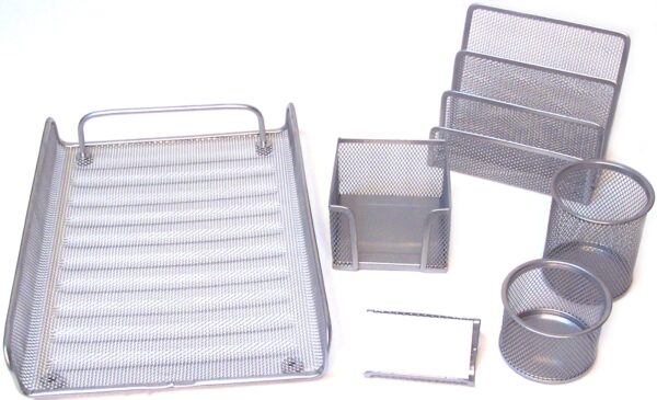 6 Piece Silver Mesh Desk Set